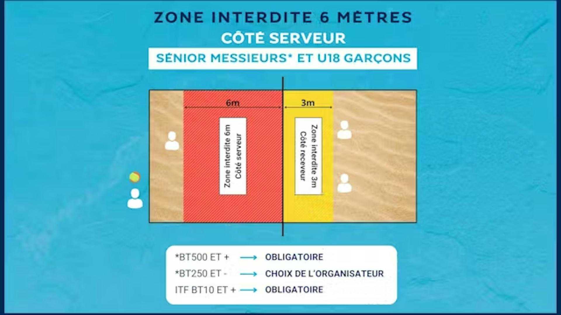 - Terrains de beach volley (dimension standard 8x16m), entièrement compatibles avec le beach tennis